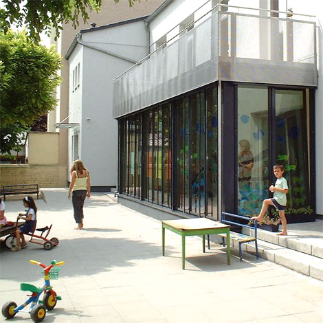 Entkernung und Umbau eines Kindergartens und Anbau zur Vergrösserung der Gruppenräume.